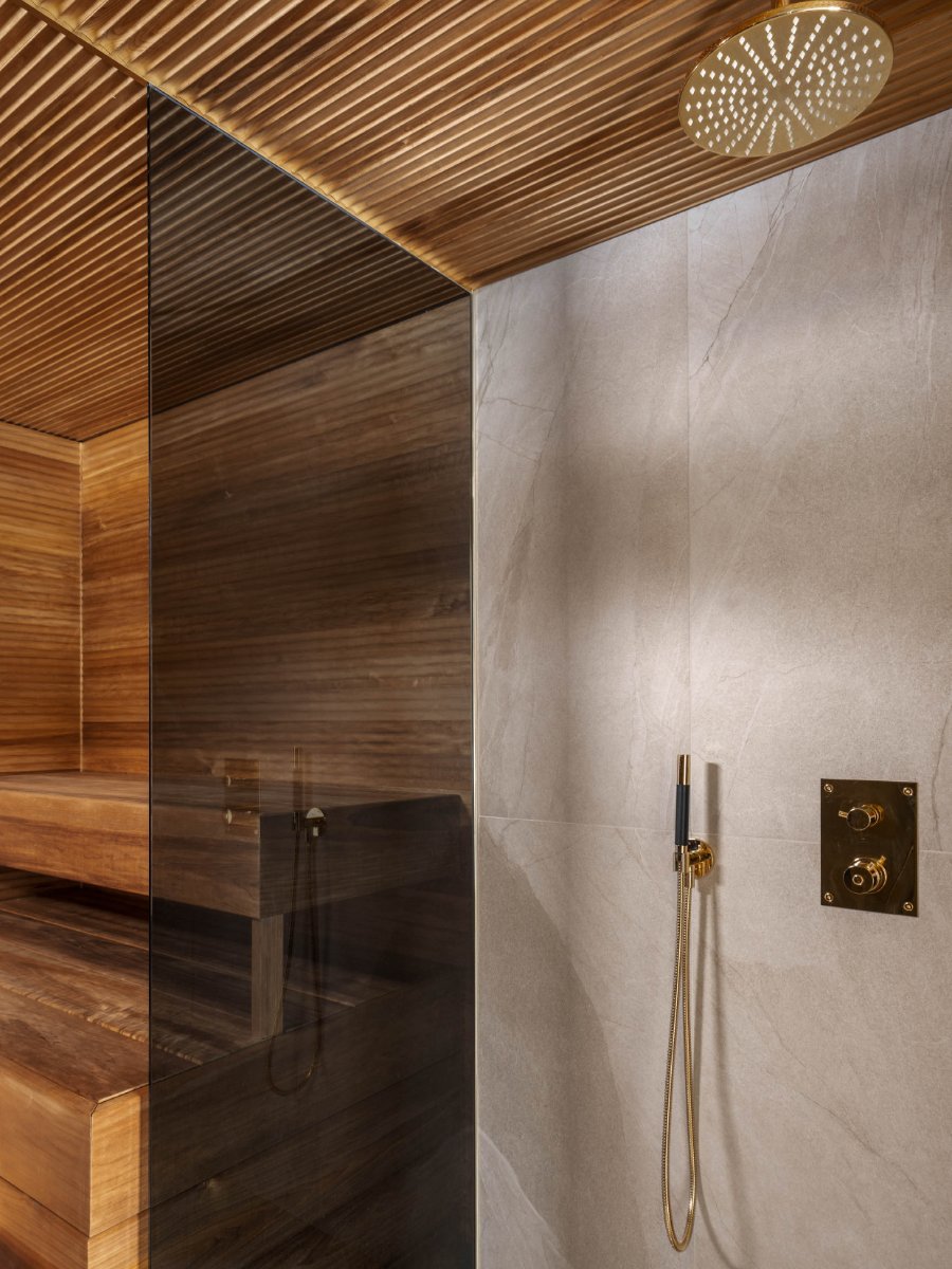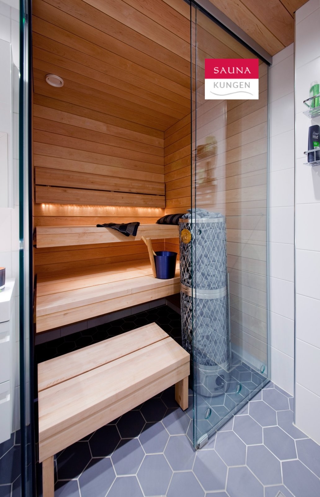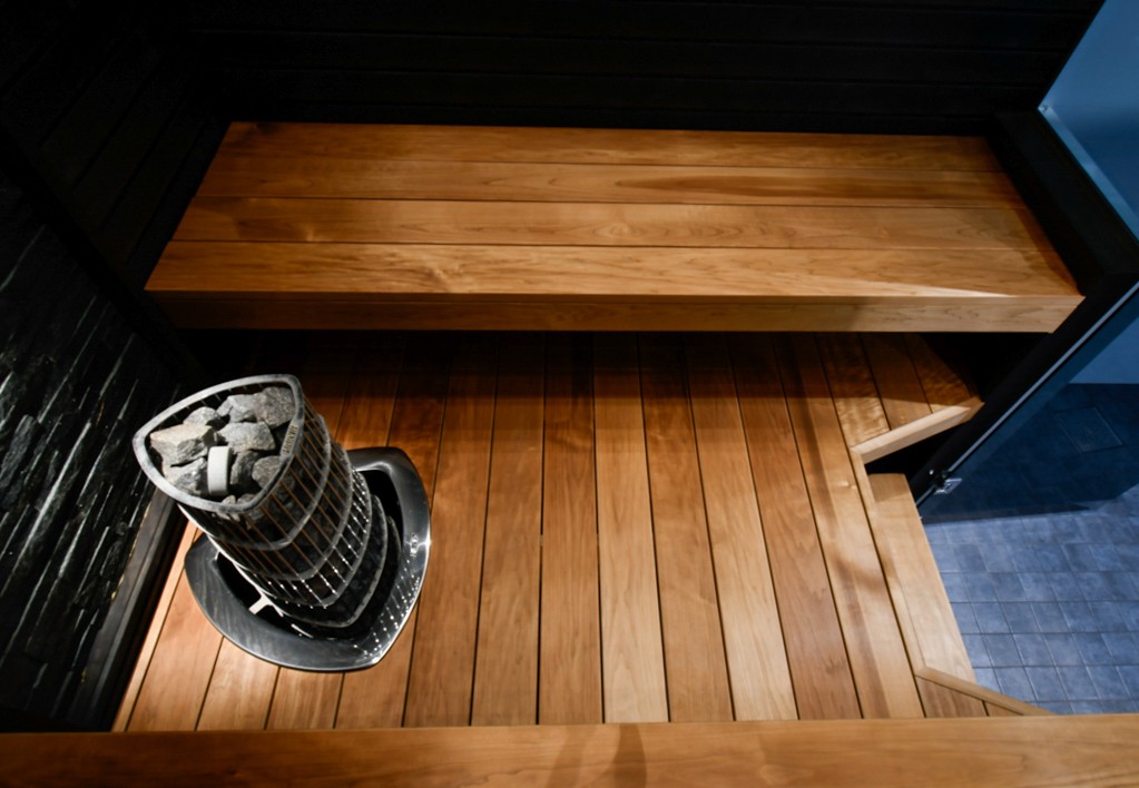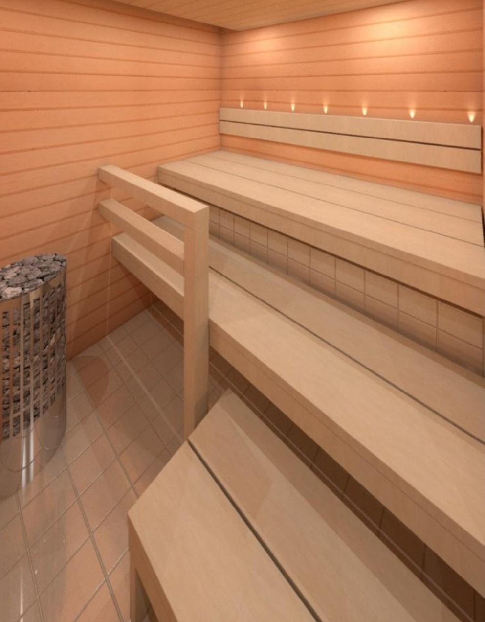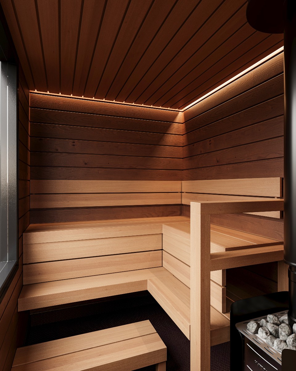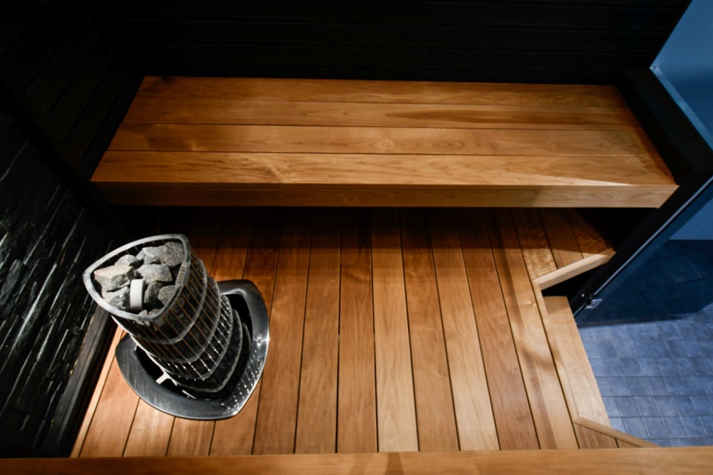 Bastuvagn med hörnbänk: Stark bastulavar, al – Direkt-panel, värmebehandlad asp